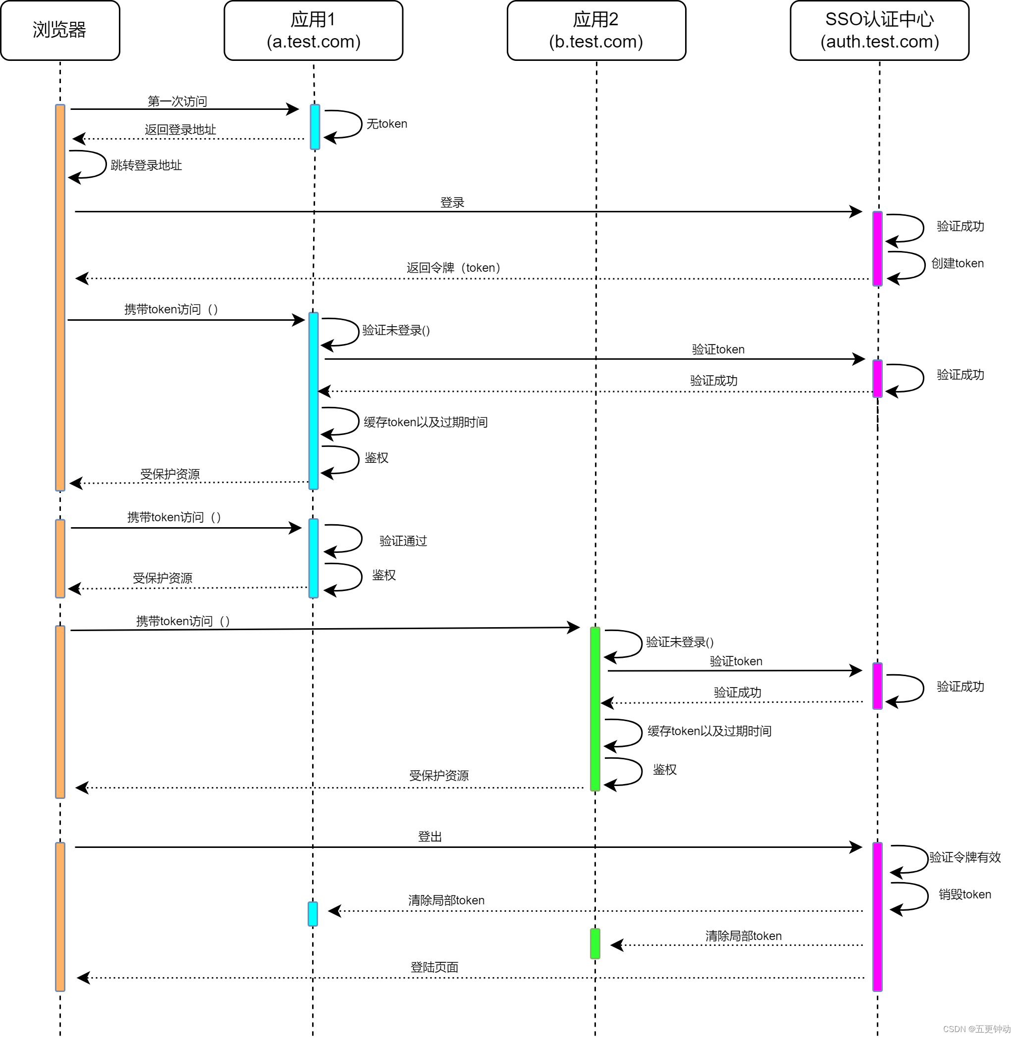 • SSO核心意义就一句话:一处登录,处处登录;一处注销,处处注销。就是在多个应用系统中,用户只需要登录一次就可以访问所有相互信任的应用系统,即用户只需要记住一组用户名和密码就可以登录所有有权限的系统。
