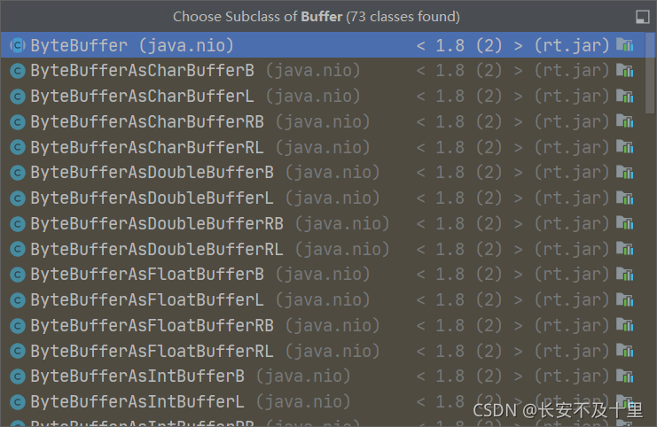 - 创建视图缓冲区的方法,允许将字节缓冲区视为包含某些其他原始类型值的缓冲区; 和 compacting 、 duplicating和slicing字节缓冲区的方法。