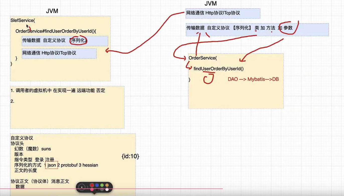 - 需要考虑:1:通信方式,2:自定义协议,3:序列化,4:动态代理