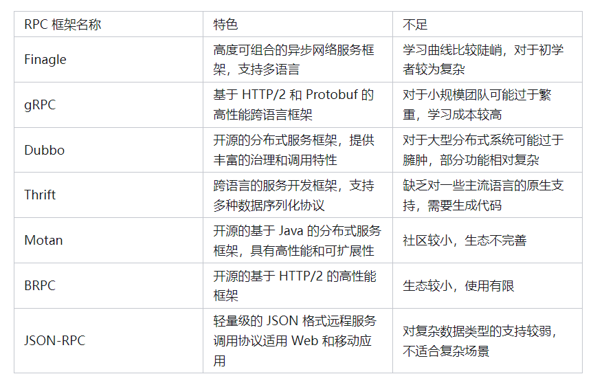 Motan:微博内部使用的 RPC 框架,于 2016 年对外开源,仅支持 Java 语言。